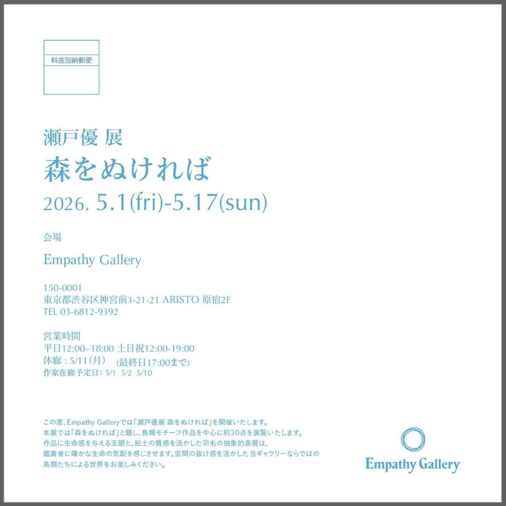 Empathy Galleryでは、瀬戸優による彫刻展「森をぬければ」を開催する。